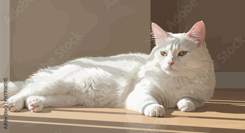 Serene white cat basking in the sunlight, a minimalist vector artwork