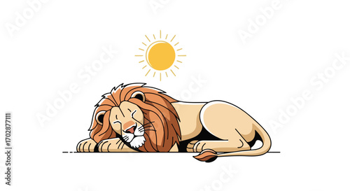Lazy Lion Cartoon Illustration Basking Under a Sunny Sky, Embracing Relaxation and Leisure, Whimsical Representation of a Peaceful Day for the