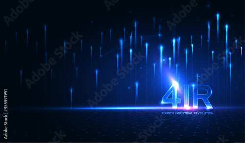 Fourth industrial revolution on futuristic hud with world map globe. concept of automatization, machinery, robotic technology, industrial revolution and artificial intelligence.