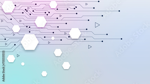 Electronic board technology with hexagons and shadow. Hi tech digital technology and engineering concept background.