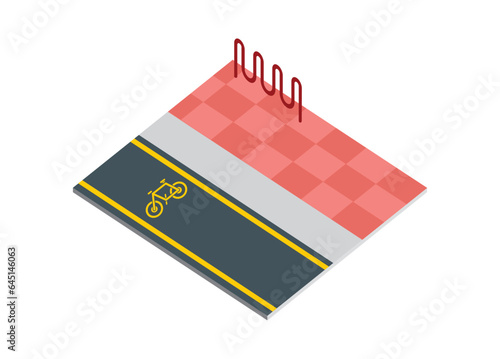 Pedestrian with bicycle parking lot. Simple flat illustration in isometric view.