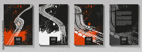 Tire tracks, vector illustration, grunge. For background page, brochure template, booklet, flyer.