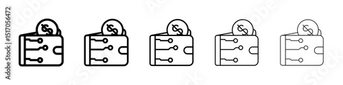 Set Cryptocurrency bitcoin in circuit, wallet, , Smart contract, ASIC Miner and Proof of stake icon. Vector