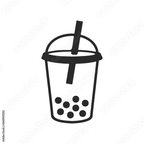 Minimalist bubble tea icon with straw and tapioca pearls