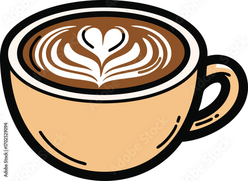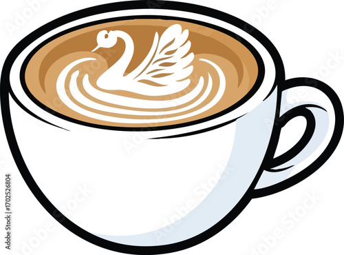 Creamy Latte Art: Coffee Cup Illustration for Cafe Menus & Websites