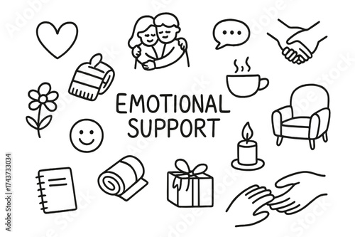 Emotional Support Doodles. Emotional Support. Hand-drawn doodle illustration of Emotional Support. Heart,