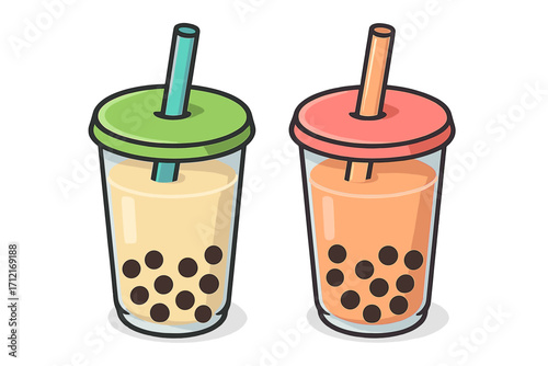 Vector art of colorful bubble tea drinks with various flavors
