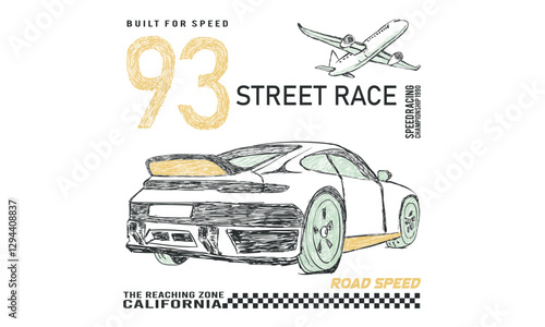 Racing club vector t-shirt print design. Car print design for t-shirt Street Wear and Urban Style print, poster, sticker, Vintage college style typography slogan, American racing club t shirt print