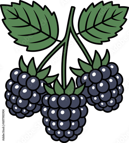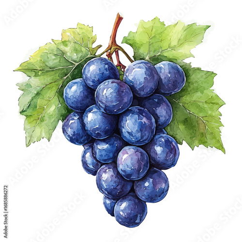 Two clusters of purple grapes with green leaves on branches stylized illustration