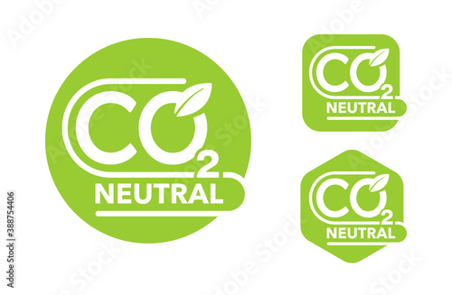 CO2. Carbon Neutral (zero emission) icon logo for climate change and green energy campaign. Eco green friendly sticker label for better environment concept.