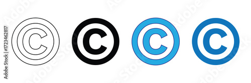 Copyright Icon Set. Trademark Copyright Protection C Mark flat and line Vector Sign isolated on transparent background Suitable collection for Apps and Websites UI Designs. Business product license