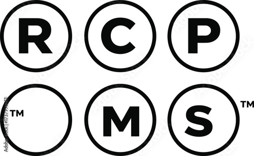 Trademark symbols set. Trademark legal protection mark, letter "R" in a circle or "TM". Vector copyright sign, letter "C" in a circle.