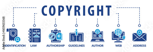 Intellectual property banner web icon vector illustration concept for trademark with icon of design, patents, invention, authorship, law, copyright, protection, and brand