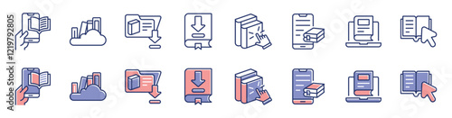 Download book. E-book marketing, content marketing, ebook download. Vector illustration.