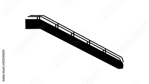 Minimalist vector illustration depicting an accessibility ramp leading to a building entrance monochrome outline drawing