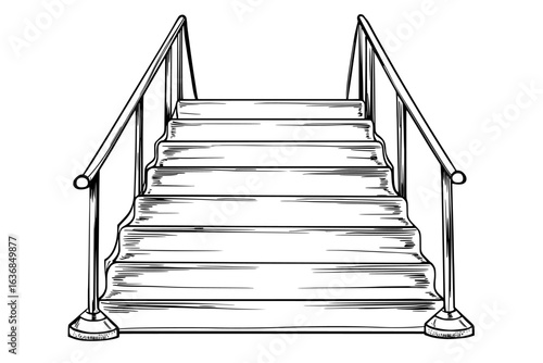 Detailed Monochrome Stairway with Parallel Lines in Woodcut Style Illustration Art