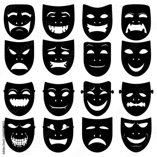 Diverse collection of expressive emoji icons showcasing a spectrum of emotions in various geometric shapes for modern design projects