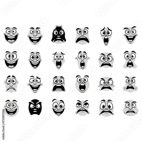 Expressive emoji icons capture a spectrum of human emotions for modern communication and digital design projects