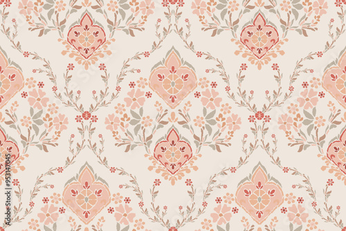 Motif ethnic handmade beautiful Ikat art. Ethnic abstract floral, leaves, botanical pattern. folk embroidery, Peruvian, Indian,Moroccan, Turkey, Uzbek style. ornament print. brown and orange color