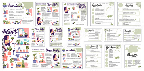 Big set of Nature Template infographics for houseplant care. The collection banner, posters, flyers for for advertising