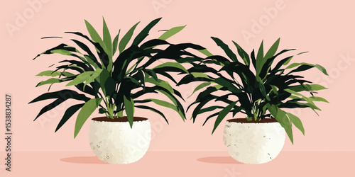 Two lush potted plants, captured in a symmetrical and balanced composition, against a warm, inviting backdrop. They enhance serenity and add freshness to an environment.