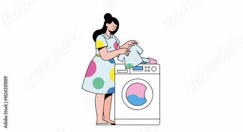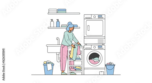 Woman Holding Potted Plant, Minimalist Illustration Representing Home Decor and Nature