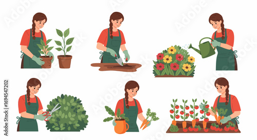Silhouettes of women gardening watering pruning and holding potted plants woman