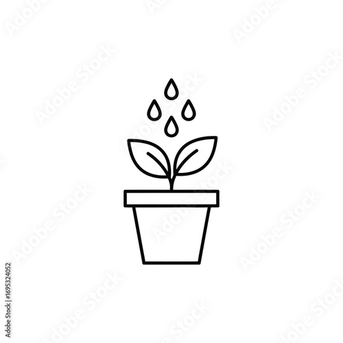 Potted plant with water drops a simple line drawing of a plant in a pot being watered, symbolizing growth and care