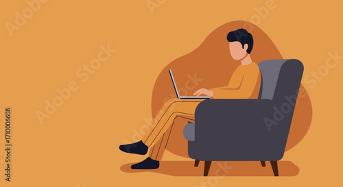 Minimalist illustration of a person nurturing a plant in a jar, reflecting modern home care and a serene lifestyle. Ideal for wellness or decor concepts.