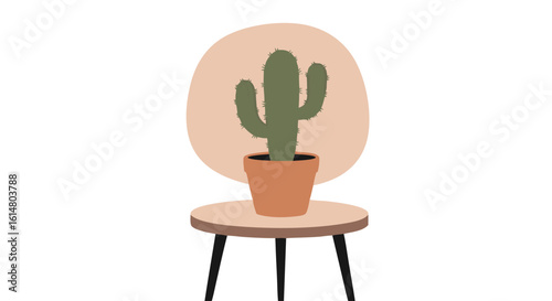 Cactus plant in Pot on a Table: A charming depiction of a cactus, potted with care and elegance, resting on a simple table