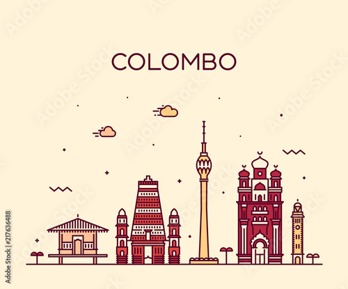 Colombo (Sri Lanka) skyline silhouette with panorama in white background. Vector Illustration. Business travel and tourism concept with modern buildings. Image for presentation, banner or web site.