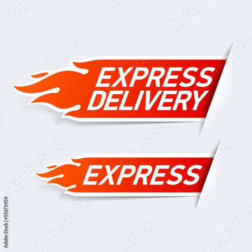 Fast delivery service elements. Express shipment truck and courier movement icons, motion food runner transport deliverying