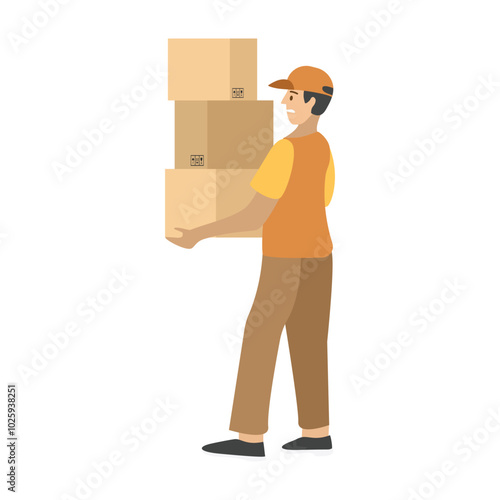 Delivery person in uniform holding a cardboard box, symbolizing efficient and reliable courier service.