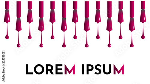 illustration template with suitable size for business card to manicure and pedicure nail salon (studio or artist) with pink nail polish on a big brushes and dropes of polish. Text "Lorem Ipsum"