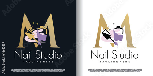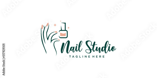 Nail art or nail polish for beauty logo design with unique concept Premium Vector