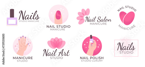 Nail polish or nail salon icon set logo design manicure nail polish and female finger logotype