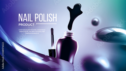 Nail polish beauty paint drop. Cosmetic bottle makeup polish nail or manicure design