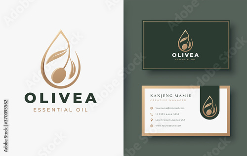 Olive logo combined with water drop style and circle concept, Olive oil logo and business card design Premium Vector