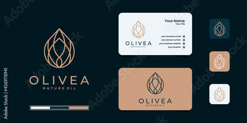 olive oil and leaf with line art style. water drop natural Vector logo design and business card
