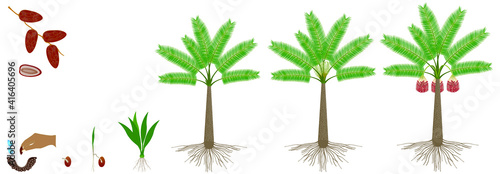 Cycle of growth of date palm tree on a white background.