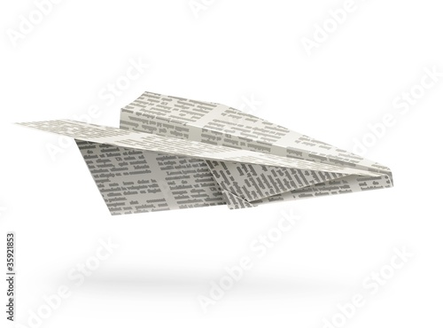 Origami paper folded toy plane is taking off to flight, 3d realistic vector illustration.