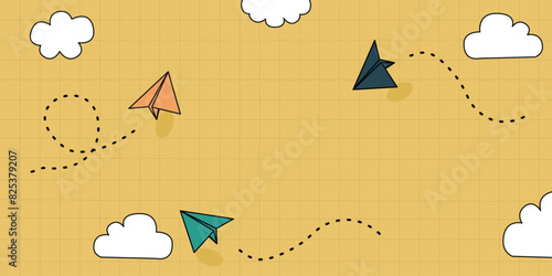 paper airplanes flying across clouds. design paper art and crafts. vector illustration