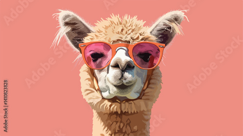 Alpacas wearing sunglasses on a white background, colorful clipart vector illustration