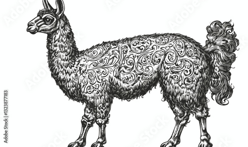 Ornate Llama Silhouette with Swirling Fur Patterns and Detailed Neck Mane.