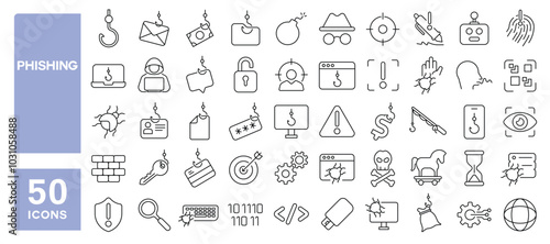 フィッシング詐欺、詐欺メール、個人情報流出などサイバー犯罪のアイコンセット
