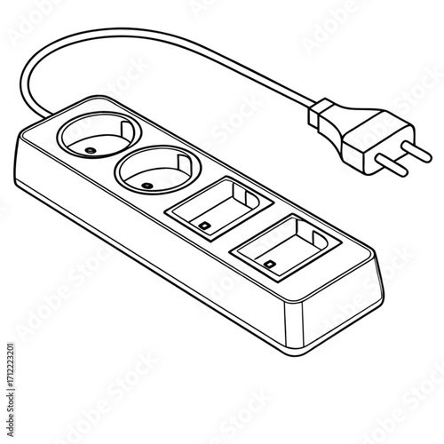 Plug vector. Outlet vector. Power strip safety, short circuit from full plug in 5-outlet power strip. Dangerous from short circuit peripheral.