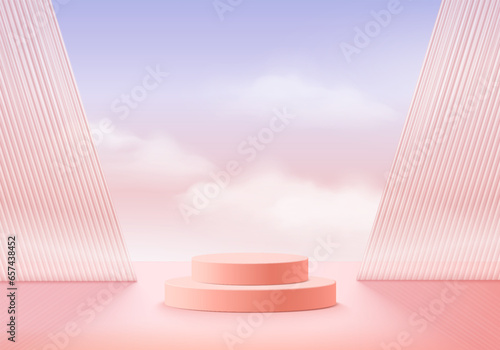 Podium set in pastel color. Minimalistic 3d scene. 3d podium for presentation, demonstration of goods. Vector illustration