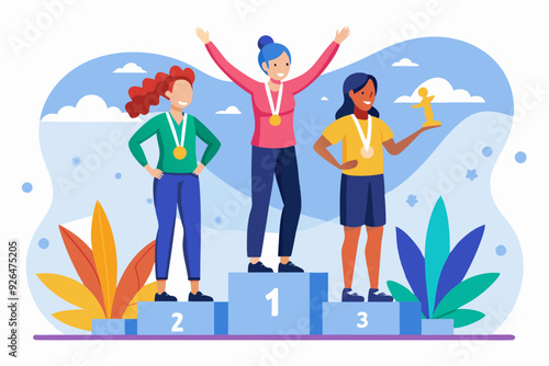 Champion winning podium, ranking of winners and achievements, vector icon illustration material