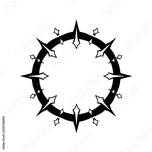Spiky border vector. Grunge frame with jagged, sharp thorns. Irregular, angular shape for horror or heavy metal design. Distressed brush stroke texture illustration.