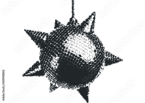 A voxel-style spiked sphere that looks like a viral particle. A sphere made of dots. Abstract background with dynamic particles. Element for scientific design. 3D vector for brochure, cover, etc.